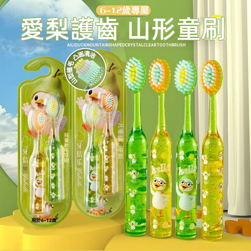 🔥6-12 歲專屬愛梨護齒山形童刷|可愛鴨造型,凸面清潔超密刷毛,牙倍樂兒童軟毛牙刷,護齒潔牙讓孩子愛上刷牙✨